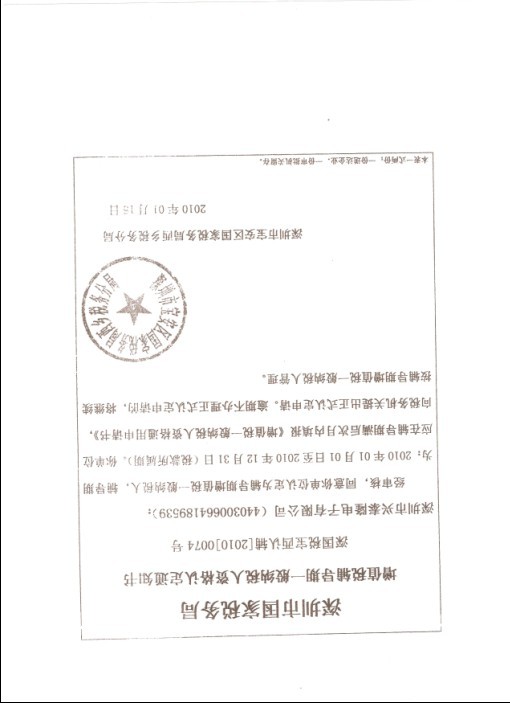 兴泰隆电子一般纳税人资格证书