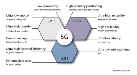 每个3GPP规范版本中都增加了各种功能,旨在解决这三个类别在不同方面的问题。在早期的规范版本中,已经解决了今天已经活跃或即将到来的特定应用场景,而未来的应用场景将在以后的版本中得到解决——所有这些都是5G持续发展的一部分。