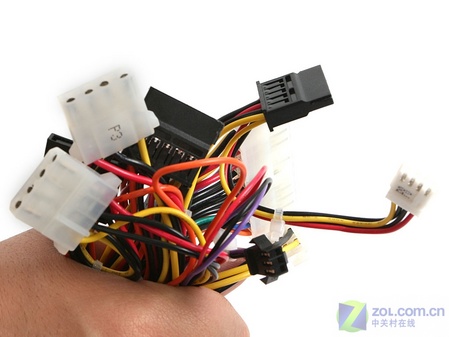 航嘉磐石315在提供输出接口的类型和数目上,跟以往的电源版本有些区别。SATA接口设备取代IDE接口设备是必然的趋势,所以在这款电源提供的接口中,SATA接口达到了四个,而D型4Pin的IDE设备接口只有两个,SATA完全取代了IDE昔日的地位。另外这款电源还提供了一个20+4Pin主板接口、1个小4Pin以及1个方4Pin接口。