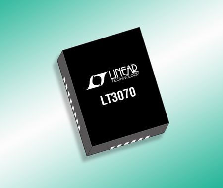 LT3070 采用耐热增强型、扁平 (0.75mm) 28 引线 4mm x 5mm QFN 封装,E 和 I 级版本都可在 -40°C 至 +125°C 的结温范围内工作。以 1,000 片为单位批量购买,每种版本的价格分别为 4.20 美元和 4.80 美元。如需更多信息,请登录 www.linear.com.cn。