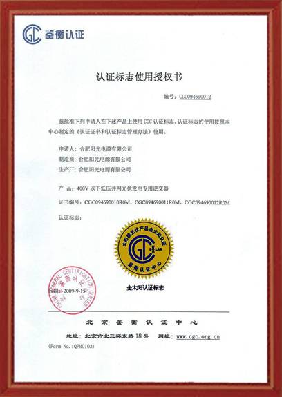 此次通过认证的并网逆变器,是根据《400V以下低压并网光伏发电专用逆变器技术要求和试验方法》的要求,由北京鉴衡认证中心负责,中国电力科学院测试,并经过全面、严格的工厂审查。认证的顺利通过,表明阳光电源的并网逆变器已经能够完全满足国内外各种太阳能光伏并网发电系统的配套需求,也为财政部“金太阳工程”的众多项目提供了质量保证。■