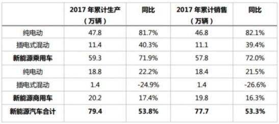 2017年的中国汽车市场以3%的微增长收官。与之形成鲜明对比,新能源汽车全年实现77.7万辆销售规模,同比增长高达53.3%。新能源汽车时代正加速向我们走来。