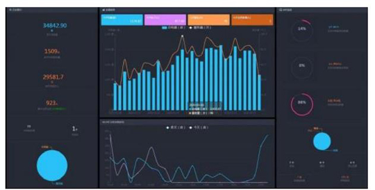 下图展示了此系统中的运营沙盘模块,通过该模块的数据分析和图表展示,商户可以更好的对自己的运营状况作出判断,有利于商户的下一步决策,真正做到对运营数据的严格把控。