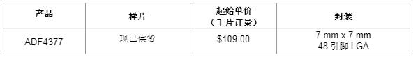 下载数据手册、申请样片和订购评估板:http://www.analog.com/cn/Pr220622/ADF4377