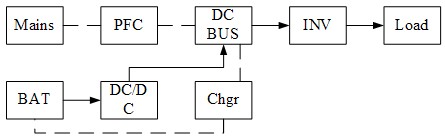 另一方面,UPS在电路架构上常用的结构是整流+电池升压+逆变器的结构,很大一部分UPS的整流和电池升压部分都是使用Boost或者变形的电路,能量仅能从市电和电池流动到直流母线上,而不能反向流动。这样即使软件上允许能量回馈,但是当发生能量回馈时,由于能量都储存在直流母线上,造成直流母线升高,最终仍然会导致UPS跳脱保护。