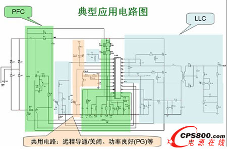 图1是采用NCP1910的典型应用电路图共用电路,它包括远程PFC段、LLC段,以及实现导通/关闭、功率良好(PG)等的共用电路。