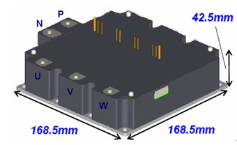 J系列EV-IPM采用第5代LPT-CSTBTTM硅片技术,模块内硅片上集成电流和温度传感器,杂散电感低。目前该产品的电流电压等级有:300A/600V、600A/600V、150A/1200V和300A/1200V。