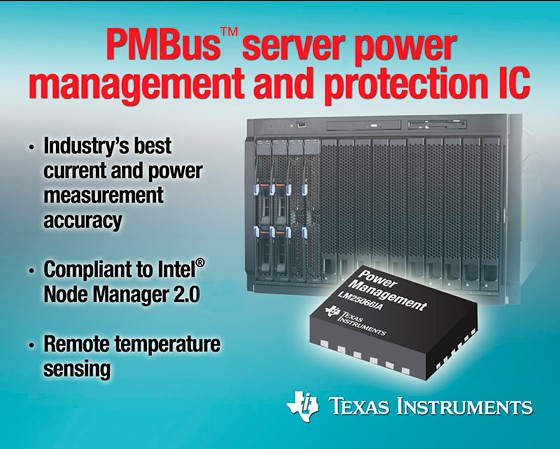为支持 Intel® Node Manager的服务器平台实现最精确的电源监控,降低数据中心运营成本,提高电源及散热系统智能性日前,德州仪器(TI)宣布推出一款提供片上PMBus支持的最新服务器监控、保护及控制IC。该 LM25066IA 支持 Intel® Node Manager2.0,为服务器设计人员提供一款直接连接Intel管理引擎的系统电源管理及保护解决方案。LM25066IA 在服务器工作温度范围内支持1%的电流测量误差精度以及2%的电源测量误差精度,可帮助动态服务器平台实施用电控制(power capping),最大限度地降低运营成本,提高数据中心可靠性。