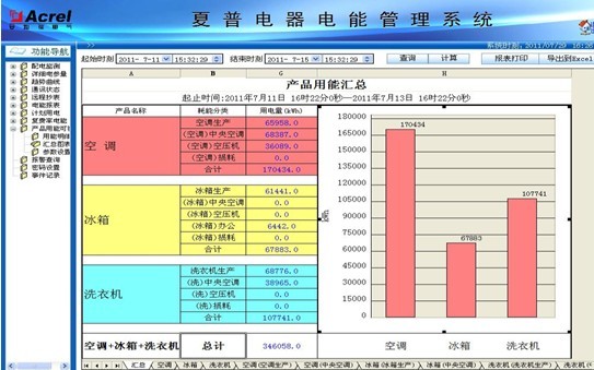 电能监测要求精确到办公区和每条生产线的主要用电设备,如生产线的注塑机、冷却泵、冲床和办公区的照明、热泵、电梯等设备。在时间上需要从年度到每季度、每月、每周、每天,将每个重要用电环节的电能消耗与产量产值的关系清晰呈现出来,并且与每条生产线、班组乃至个人的绩效考核结合起来,真正做到电能管理的精细化和全面化,将节能降耗工作落到实处。