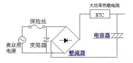 很多LED电源都是在整流器后面带电解电容的,电解电容在刚接通电源时的充电电流通常都是非常大,往往以几安培计,假如一个房间有很多个这样的电源同时接通,那么加在一起的充电电流会使得这个房间的电网产生一个极大的瞬间电流足以使得保险电闸跳掉。所以为了避免发生这样的情景,在LED电源里就需要在电解电容前面安装一个负温度系数电阻(NTC),它的特点就是平时的电阻很小,当遇到瞬间大电流时,它的阻值因为发热而瞬间变得极大,也就限制了这个瞬间大电流,当大电流过去以后,它就很快恢复成平时的小电阻,这样就避免外部受到LED电源的冲击。