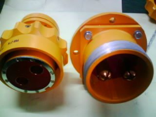 该产品接插件2芯,接触电流600A,插座与插头采用螺纹方式连接。