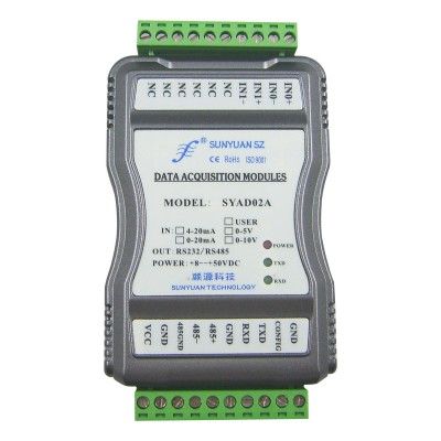 产品概述: ISOAD A08实现传感器和主机之间的信号采集,用以检测模拟信号或控制远程设备。利用先进的无源隔离技术,实现了每个通道之间互相隔离,使该系列产品抗干扰性能大大提高,在工业应用中更加方便。产品可应用在 RS-232/485总线工业自动化控制系统,4-20mA信号采集等等。 产品包括电源隔离,每通道的信号隔离,A/D转换和RS-485串行通信。每个串口最多可接255只ISOAD A08系列模块,支持两种通讯协议,命令集定义的字符协议和MODBUS RTU通讯协议,其指令集兼容于ADAM模块,波特率可由代码设置,能与其他厂家的控制模块挂在同一RS-485总线上,便于计算机编程。 ISOAD A08是基于单片机的智能监测和控制系统,所有的用户设定的校准值,地址,波特率,校验和状态,通讯协议,通道状态等配置信息都储存在非易失性存储器EEPROM里。 ISOAD A08系列产品按工业标准设计、制造,每个信号输入通道 / 输出 / 辅助电源之间相互隔离,都可承受3000VDC隔离电压,抗干扰能力强,可靠性高。工作温度范围- 45℃~+80℃。
