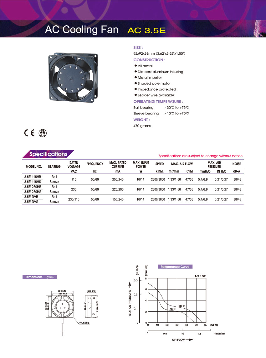台湾百瑞铁叶全金属3.5E-230电源散热风扇产品详情