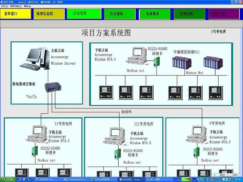 监控系统采用全中文界面,显示供配电系统的接线图,动态显示测量参数。